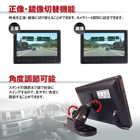 モニター本体でカメラ映像を正像・鏡像表示に切り替えることができます。