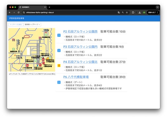 伊香保温泉は、首都圏からのアクセスに優れた温泉地であり、年間を通じて多くの観光客が訪れます。しかし、週末や連休などの繁忙期には、周辺の道路に渋滞が発生しやすく、特に公共駐車場の空き状況が把握しづらいことが課題となっていました。