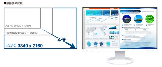 EIZO株式会社(本社:石川県白山市、代表取締役社長 COO:恵比寿 正樹)は、27型4K UHD(3840×2160)解像度の液晶モニター「FlexScan EV2740S」を7月18日に発売します。価格はオープン価格※1です。