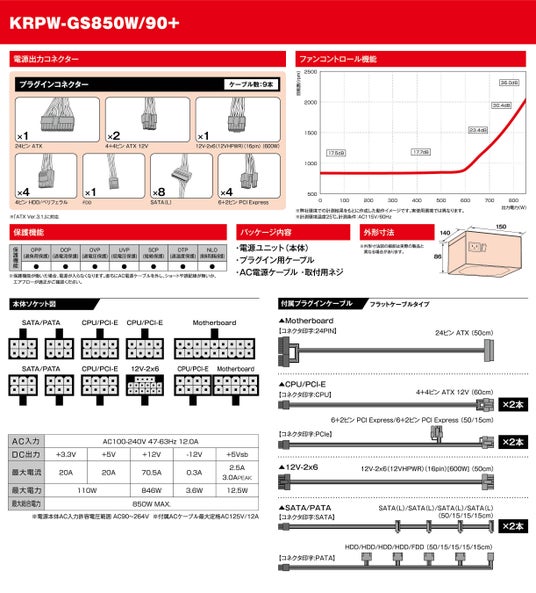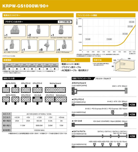 『KRPW-GSシリーズ』は、コストバランスに優れた、80PLUS GOLD認証取得のPC用ATX電源です。