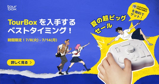 TourBoxの公式サイトも7月8日から「夏の超ビッグセール」を開催します。期間中TourBoxシリーズ各モデルをお得な価格で購入できるほか、人気ペイントアプリ「CLIP STUDIO PAINT(クリスタ)」のDEBUTバージョンを無料オプションとして入手できます。興味がある方はぜひお見逃しなく!