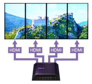 4K マルチ出力1台に2つまたは4つの4K HDMI出力端子を搭載しており、マルチディスプレイ出力が可能です。