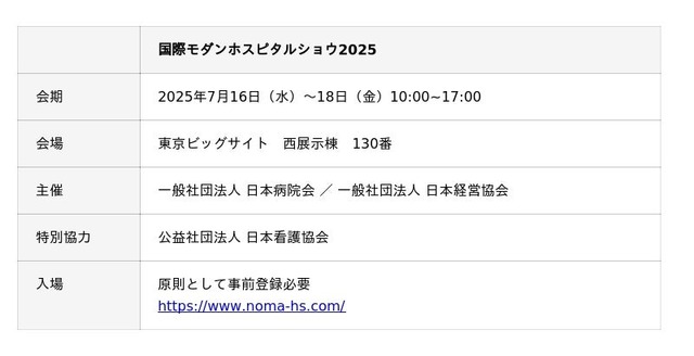 フォーカルポイント株式会社(本社:東京都港区、代表取締役 恩田英樹 以下フォーカルポイント)は、2025年7月16日(水)~18日(金)に東京ビッグサイトで開催される医療分野国内最大級の展示会「国際モダンホスピタルショウ2025(主催:一般社団法人 日本病院会/一般社団法人 日本経営協会)に出展します。