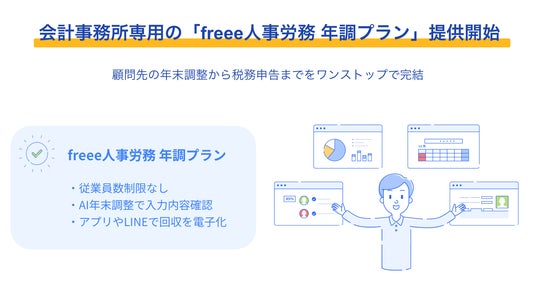 フリー株式会社(本社:東京都品川区、CEO:佐々木大輔、以下「freee」)は、会計事務所専用のfreee人事労務 年調プランの提供を開始しました。