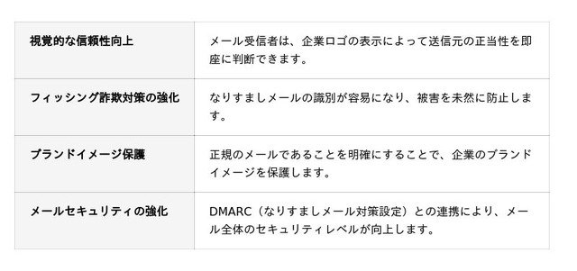 BIMIは、企業が送信するメールに自社のブランドロゴを表示できる規格です。これにより、受信者はそのメールが正規の企業から送信されたものであることをロゴで視覚的に確認でき、フィッシングやスパムのリスク低減につながります。