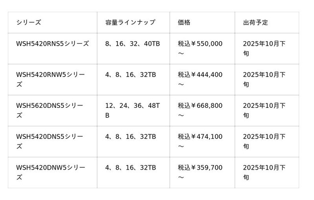 株式会社バッファロー(本社:東京都千代田区、代表取締役 社長執行役員CEO:牧 寛之)は、マイクロソフト社製「Windows Server IoT 2025 for Storage」を搭載し、高速イーサネット「10GbE」標準搭載に加え、RAID 6に対応した国内開発のハードウェアRAIDを搭載した法人向けNAS「TeraStation WSSシリーズ」5シリーズを2025年10月下旬より順次出荷、販売いたします。