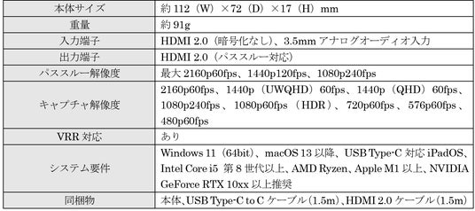 「Game Capture 4K S」は、鮮やかな4K映像や高フレームレートに対応したキャプチャデバイスです。PlayStation 5やXbox Series X|S、Nintendo Switch 2をはじめ、パソコンやMac、iPadなどのマルチプラットフォームに対応しています。4Kの高解像度に加え、1440p120fpsや1080p240fpsといった高フレームレートの映像も取り込み可能です。また、WindowsでのHDR10キャプチャやVRRパススルーに対応し、ゲームプレイと録画、配信を同時に快適に行える設計です。ドライバー不要のプラグインプレイ方式を採用し、軽量、コンパクトなデザインで持ち運びにも適しています。