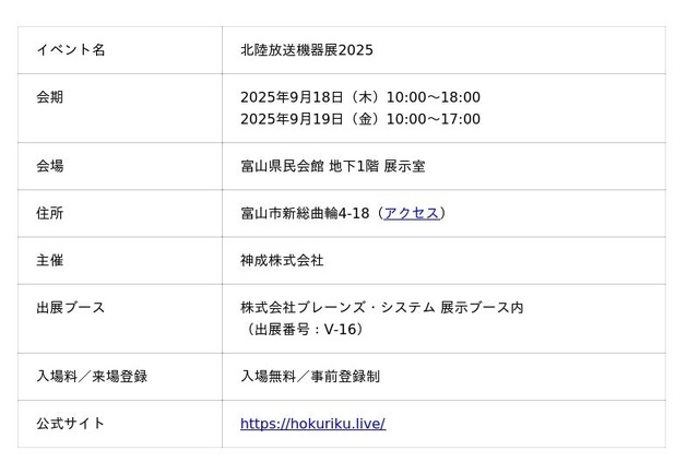 株式会社アスク(本社:東京都千代田区)は、2025年9月18日(木)・19日(金)に富山県民会館で開催される「北陸放送機器展2025」に出展いたします。