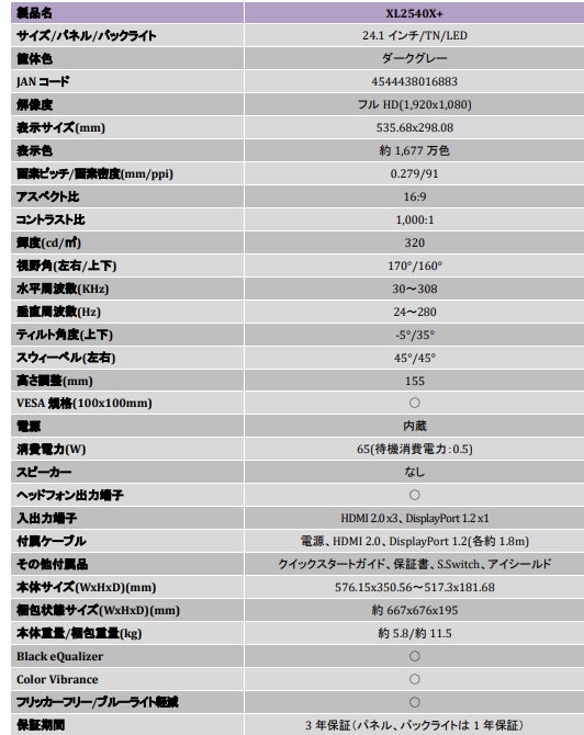 XL2540X+:https://zowie.benq.com/ja-jp/monitor/xl2540x-plus.html