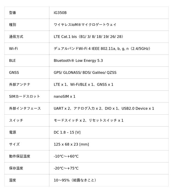 LTE Cat1 bis対応マイクロゲートウェイ iG350B