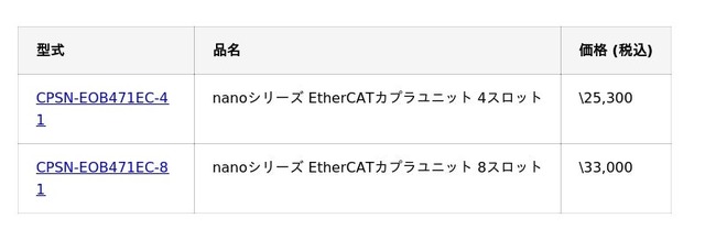 新製品は、CONPROSYS(R) nanoシリーズのI/Oモジュールを4枚もしくは8枚搭載し、EtherCATサブデバイスとしてリモートI/Oシステムを構築可能なカプラユニットです。