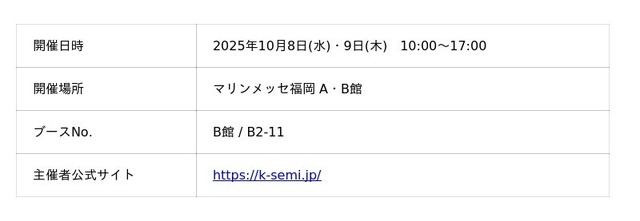 ATENジャパン株式会社(取締役社長:鄧 鴻群[Hans Teng])は、2025年10月8日(水)・9日(木)にマリンメッセ福岡で開催される「第2回 [九州]半導体産業展」に出展します。