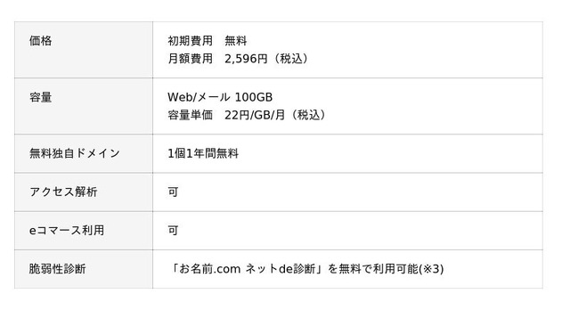 (※3) 「初月無料」は申込日から申込月の末日まで無料、翌月1日に課金が開始されます。詳細はこちら(https://www.onamae.com/option/shindan/ )をご参照ください。