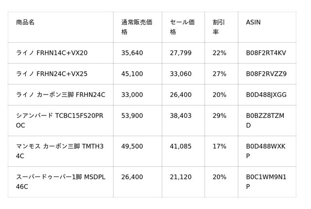 BENRO プライム感謝祭&先行セール対象商品 10月4日(土)0:00~10月10日(金)23:59