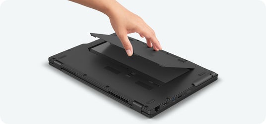 バッテリーは充放電を繰り返すと次第に消耗し、ご購入時の性能が得られなくなります。そこで、お客様ご自身で内蔵バッテリーを交換できるセルフ交換バッテリーモデルをWEB MART限定でご用意しました。工具は一切不要で、簡単に新しいバッテリー(オプション)へ交換できます。