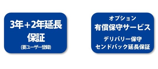 - 保証期間は安心の3年保証(センドバック保守)。さらにユーザー登録いただいたお客様限定で2年間の延長保証(合計5年間)いたします。