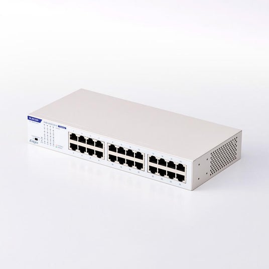 - ギガビット以上の帯域が標準となった現在の業務ネットワークに最適な全ポート1Gbps対応(※)のスイッチです。16ポートと24ポートの2モデルをご用意しています。- 「IEC61000-4」のイミュニティ試験をクリア。24時間稼働を求められるスイッチングハブにふさわしい、高い信頼性と長寿命を実現しました。