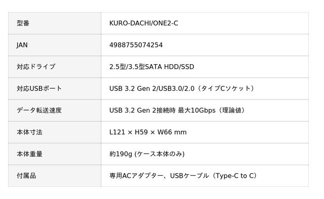 PCパーツブランド「玄人志向」は、外付けドライブスタンド『KURO-DACHI/ONE2-C』と、2.5インチ外付けドライブケース『GW2.5AB-SU3P』を発売します。