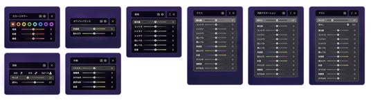 ダイナミックパネルではLrCの各種機能が用意されています、最初から自分で作成する必要はありません。種類別で分類され、オリジナルパネルと同じ並びで整理されています。カスタムが苦手なユーザーもすぐに使いこなせます。
