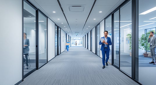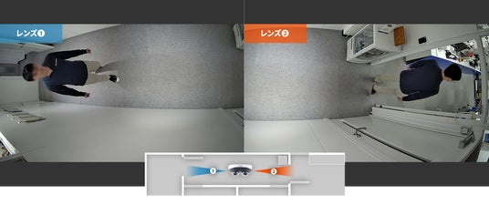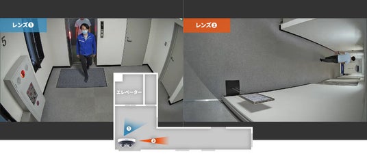 1つのレンズでエレベーターホールを撮影しながら、もう1つのレンズで廊下を撮影するなど、カメラ1台で複数の映像を表示することができます。