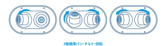 従来のカメラは、基本「1台のカメラ=1つのカメラレンズ」搭載ですが、本カメラは画角調整可能なカメラレンズ(400万画素)を2つ搭載。2台のカメラ設置が必要な場所でも、1台のカメラで撮影を実現します。導入コストの削減、設置スペースの省略化を実現します。