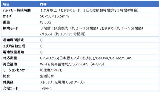 【ミマモルメGPS2の詳細仕様】