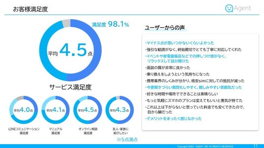 5点満点の評価で平均4.5点、満足度98.1%を達成。・マイナス点が思いつかないくらいよかった