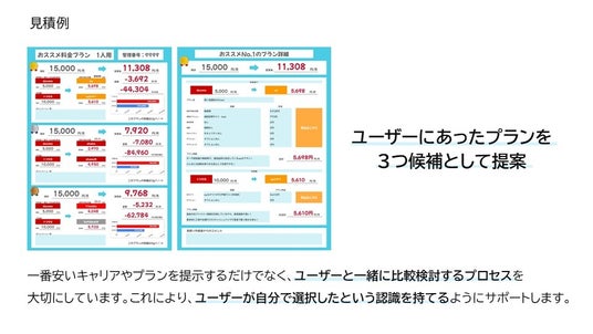 中立提案:特定キャリアに依存しない15種類のプランから最適なプランをご提案。不要な勧誘は行いません。