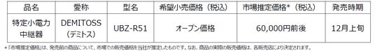 株式会社JVCケンウッドは、KENWOODブランドより、“DEMITOSS(デミトス)”シリーズの新モデルとして、特定小電力中継器「UBZ-R51」を12月上旬より発売します。