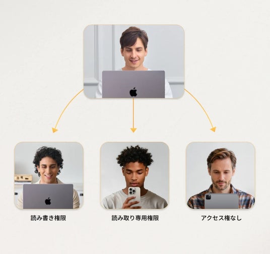 データアクセスを細かく管理強力な権限管理を使って、メンバーごとにプライベートフォルダやスペースを設定、簡単に共有ができます。