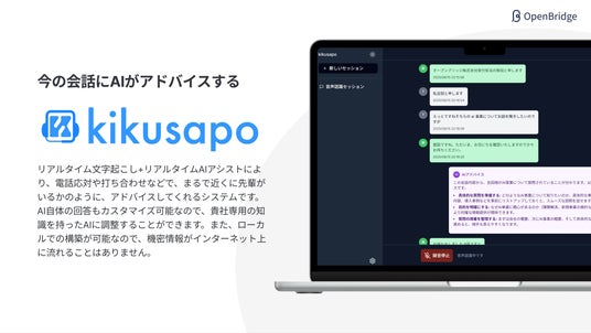 OpenBridge株式会社、「AI×業務改善×現場支援」に特化したAIソリューションを展開、企業のDX推進を支える“自社AIプロダクト”としてkikusapoを正式リリース