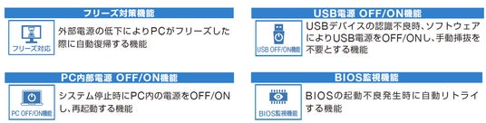 - ファンレス設計による静音・安定稼働
