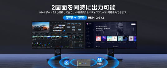 - 4K@60Hzに対応したデュアルHDMIポートを搭載。2台のモニターへの同時映像出力が可能で、プロフェッショナルなマルチディスプレイ環境を構築できます。