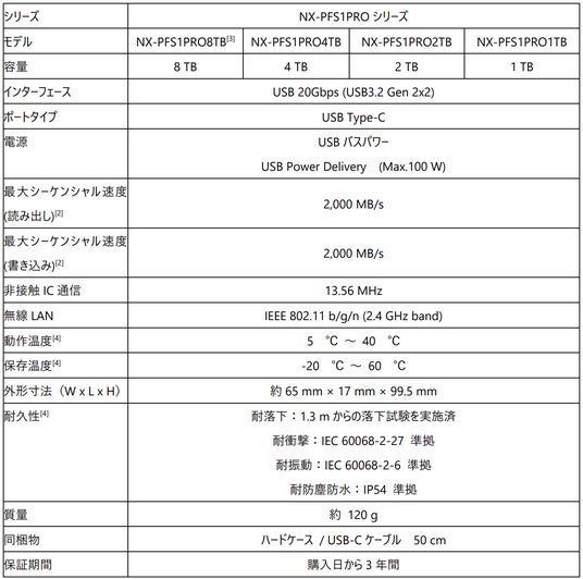 [3] NX-PFS1PRO8TBには安定動作のため、PDアダプターを接続してご使用ください。