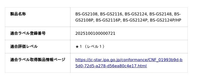 株式会社バッファロー(本社:東京都千代田区、代表取締役 社長執行役員CEO:牧 寛之)は、法人向けスマートスイッチ8型番において、経済産業省の主導のもと独立行政法人情報処理推進機構(IPA)が運用するセキュリティ要件適合評価及びラベリング制度「JC-STAR」に適合したことを発表いたします。