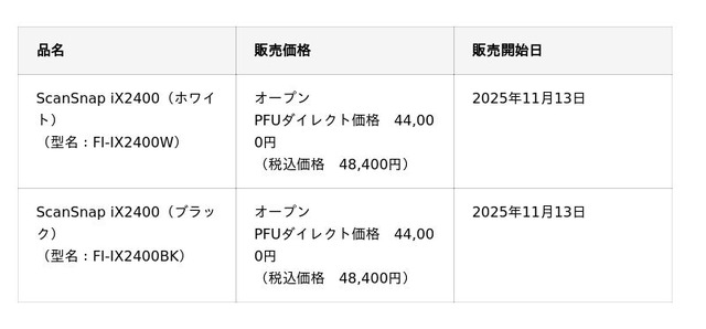 株式会社PFU(社長執行役員:平原 英治、以下PFU)は、ワンプッシュでスピーディーに書類を電子化するイメージスキャナー「ScanSnap」シリーズの最新モデル「ScanSnap iX2400(以下iX2400)」を、11月13日から販売開始します。