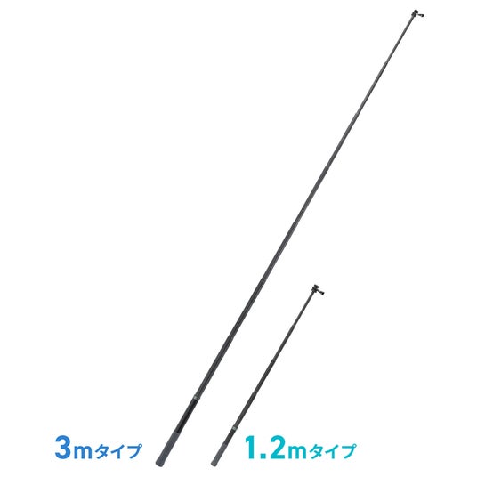 8段伸縮構造により、最大約3m/1.2mまで伸ばせるロングタイプ。地上からでも高所を簡単に撮影できます。3mタイプでは脚立や高所作業のリスクを軽減し、安全性を高めながら効率的な撮影をサポートします。