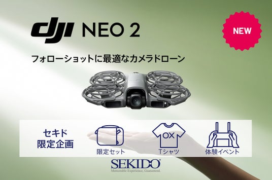 DJI(ディージェイアイ)正規販売代理店としてドローンビジネスの最先端を支える株式会社セキド(本社:東京都港区、代表取締役:大下貴之)は、2025年11月13日(木)21時に発表されたドローン「DJI NEO 2(ネオ 2)」の取り扱いを開始しました。本体のボタン操作だけで手のひらから離着陸でき、ジェスチャー操作で本格的な映像が撮影できます。対象を自動で捉えるActiveTrackのほか、音声操作やスマートフォン・送信機・ゴーグルなど様々な方法で空撮フライトが楽しめます。また、DJI認定ストア 東京虎ノ門 では、店内のフライトケージで DJI Neo 2 の性能を体験できるほか、11月14日(金)には横浜で無料のフライト体験会も開催します。ぜひこの機会にご購入ください!