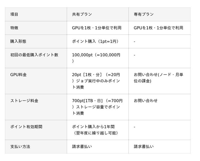 ポイント制導入 GPU1分・1枚単位の課金でクラスター構成環境を提供