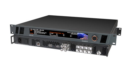 HELIOS: 100Gネイティブ対応1RUサイズ プロセシングプラットフォーム。SDI、HDMI、DisplayPort、SMPTE ST2110、IPMXの入力に対応。