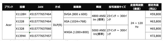 日本エイサー株式会社(本社:東京都新宿区、代表取締役社長:ボブ・セン)は、Acerブランドより、DLP方式を採用したプロジェクター新製品4機種「X1128H」「X1228」「X1328」「X139Wi」を発表いたします。