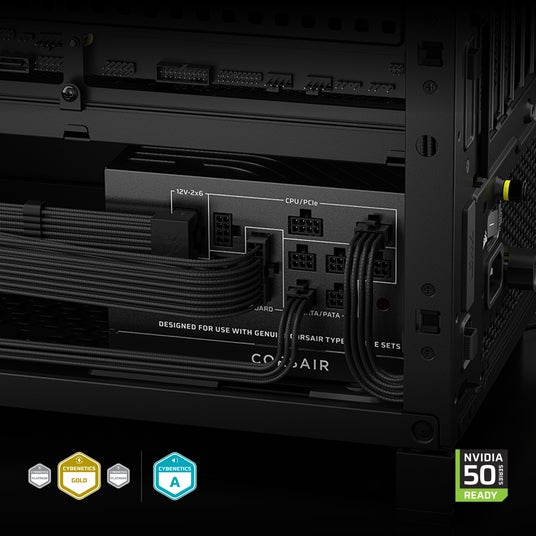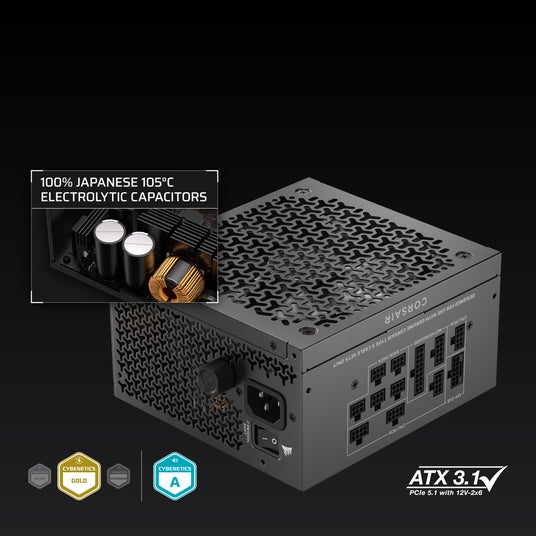 「RMx Shift 2025」シリーズは、Cybenetics GOLD認証取得を取得した電源ユニットです。静音性に優れた140mmの流体軸受ファンを備え、ファン回転数を調整するダイヤルを搭載。850W、1000Wの容量をラインナップしております。