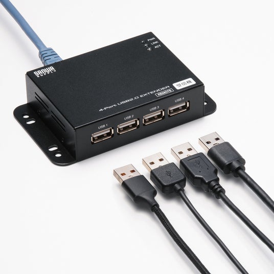 最大4台のUSBデバイスを延長できる4ポートのハブ付きです。