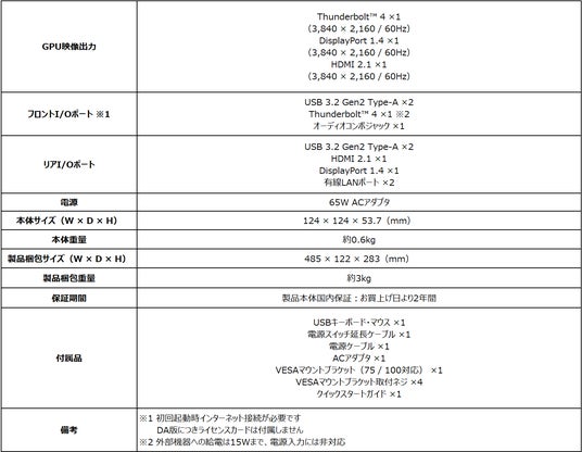 HDMI、DisplayPort、Thunderbolt(TM) 4の3画面同時出力で作業効率アップ