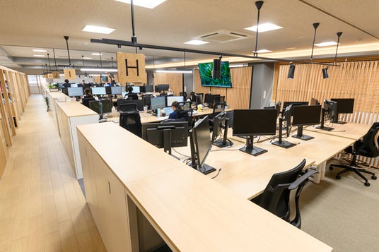 清水様:フリーアドレス制も導入し、同じように業務ができるようにしています。ディスプレイの高さ調整や画面配置も個々に合わせて設定できるので、柔軟な働き方が可能になりました。高さを調整できるため、立って仕事もできる机も導入しています。