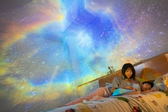 ・マグネット式で簡単に装着可能な2種類のレンズ「Aladdin Lens A」 「Aladdin Lens B」 を用意。「Aladdin Lens A」では画面を5倍に拡大、星空観察で幻想的な雰囲気を楽しめます。「Aladdin Lens B」ではやわらかな光で癒しやリラックスした雰囲気を演出します。2つのレンズで合計100種類以上※2の厳選素材を収録し、専用アプリ「ほしぞらさんぽ」からいつでも体験できます。