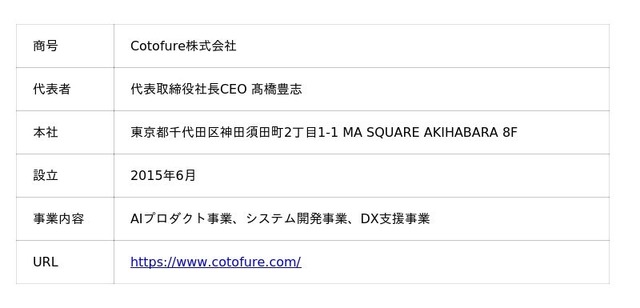 AI(Artificial Intelligence)を活用したプロダクト事業を展開するCotofure株式会社(本社:東京都千代田区、代表取締役社長CEO:高橋豊志)は、AIカメラソリューション『EMOTICS(エモティクス)』において、新たに外部カメラ連携機能をリリースしたことをお知らせします。