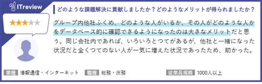・グループ内他社ふくめ、どのような人がいるか、その人がどのような人かをデータベース的に確認できるようになった。