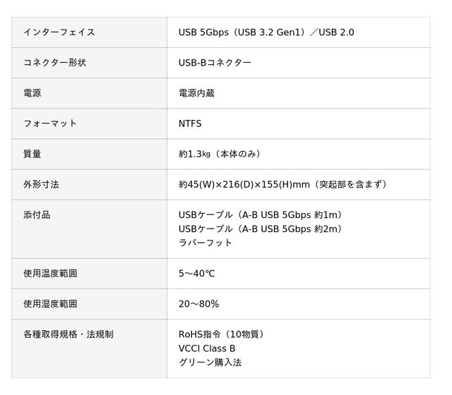 本商品はUSB 5Gbps(USB 3.2 Gen1)対応の外付けハードディスクです。信頼性に定評のあるWD社製Ultrastar(エンタープライズ向けハードディスク)を搭載し、5年保証付きのため、長く安心してお使いいただけます。Ultrastar採用の外付けハードディスクは当社初となります。■Ultrastar採用の理由