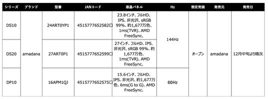 日本エイサー株式会社(本社:東京都新宿区、代表取締役社長:ボブ・セン)は、Acerグループ傘下となった日本発のライフスタイルブランド「amadana」より、23.8インチ FHDモニター「DS10」、27インチ FHDモニター「DS20」および15.6インチ FHDポータブルモニター「DP10」を12月中旬より順次発売いたします。本2製品は、Acerの技術力とamadanaが長年培ってきたミニマルかつ機能美を追求したデザイン哲学を融合させた新ラインアップであり、2025年9月5日(金)よりドイツ・ベルリンで開催される世界最大級のエレクトロニクス展示会「IFA 2025」にて先行出展されたモデルです。